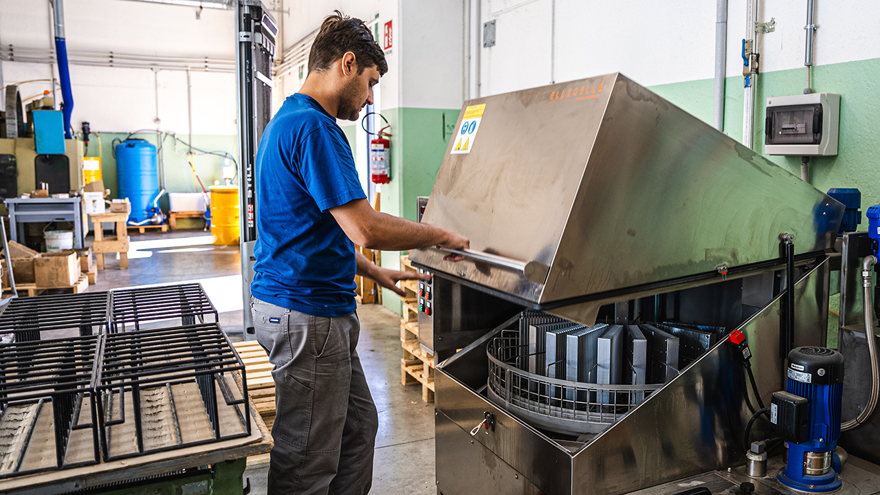 Le nostre 2 lavatrici, dotate di sistemi di centrifugazione dei fanghi a circuito chiuso per il riutilizzo diretto dall’acqua e di detergenti a base di bicarconato, rimuovono completamente le impurità e le varie sostanze residue dalle lavorazioni, per poter consegnare particolari metallici incontaminati rispettando l’ambiente.